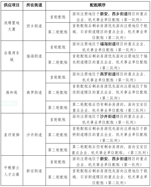 ● 宝安:宝安新一批保租房起头配租,共5个项目427套房源。具体配租挨次详见下表。详情